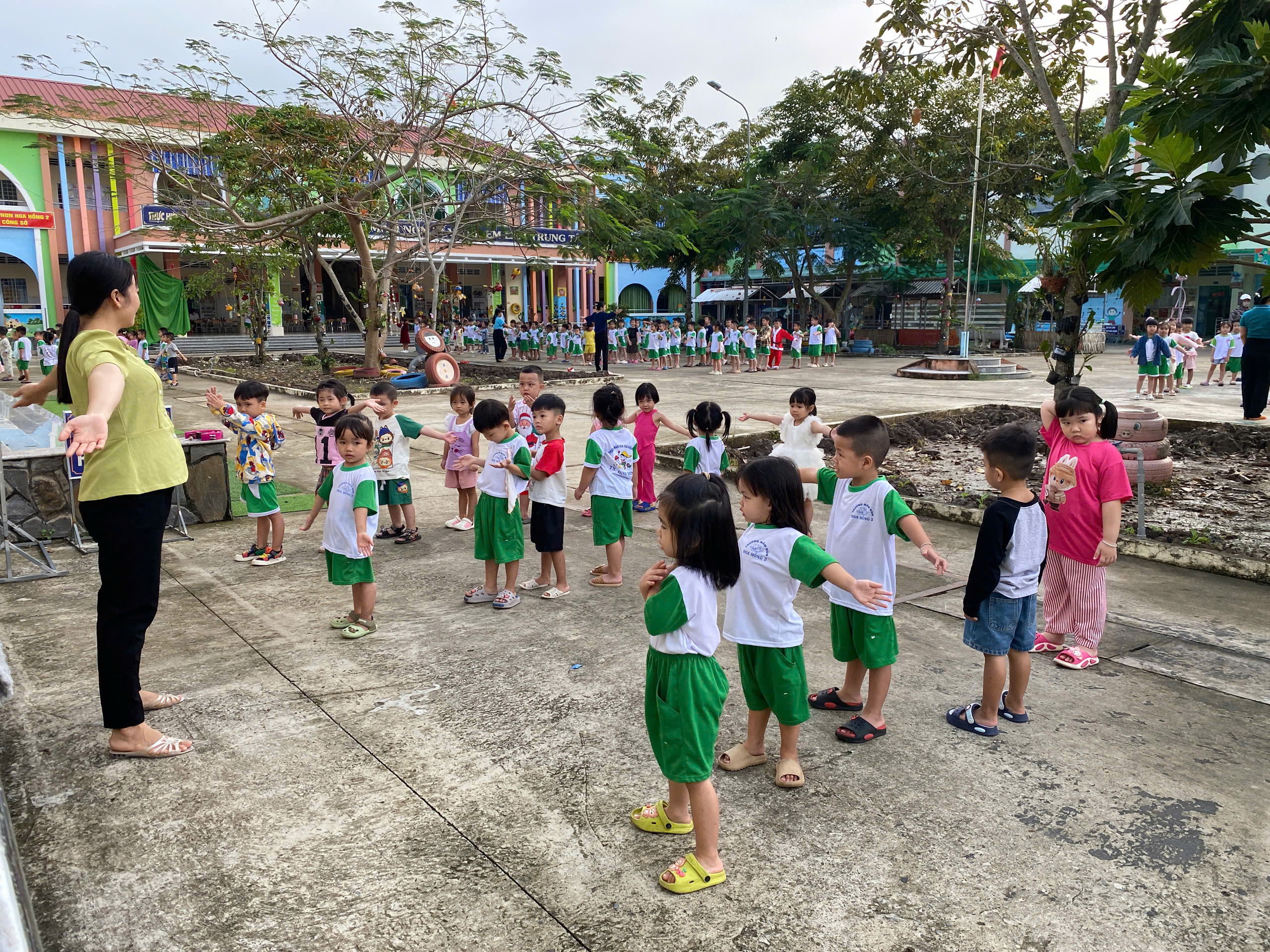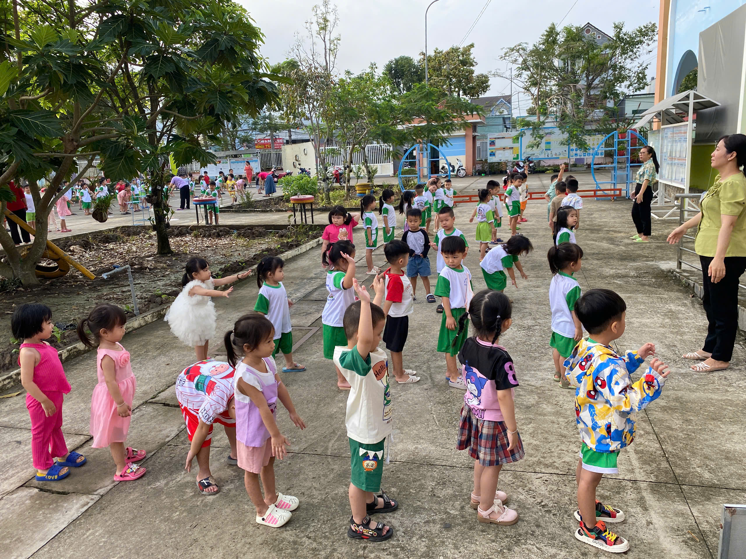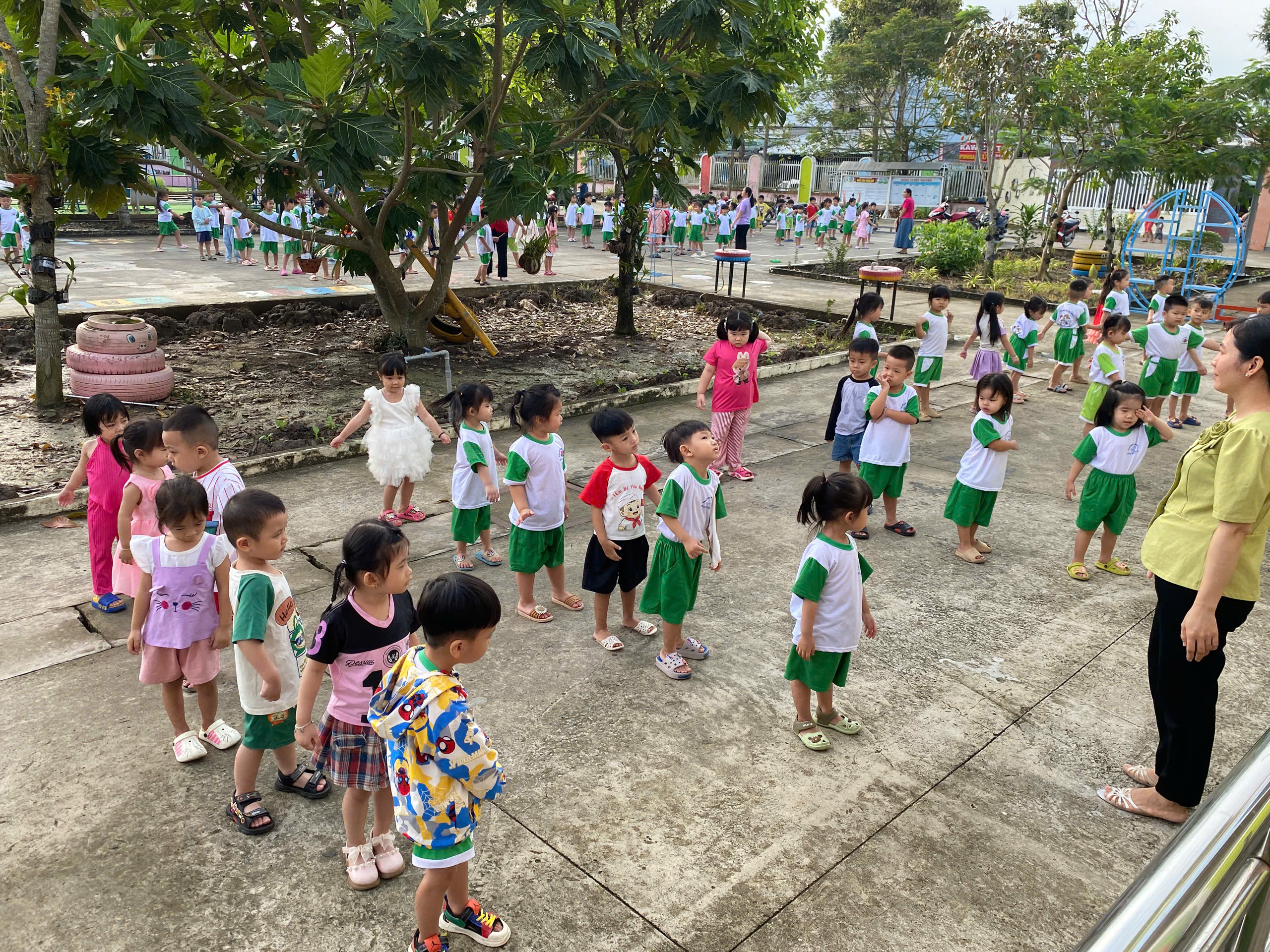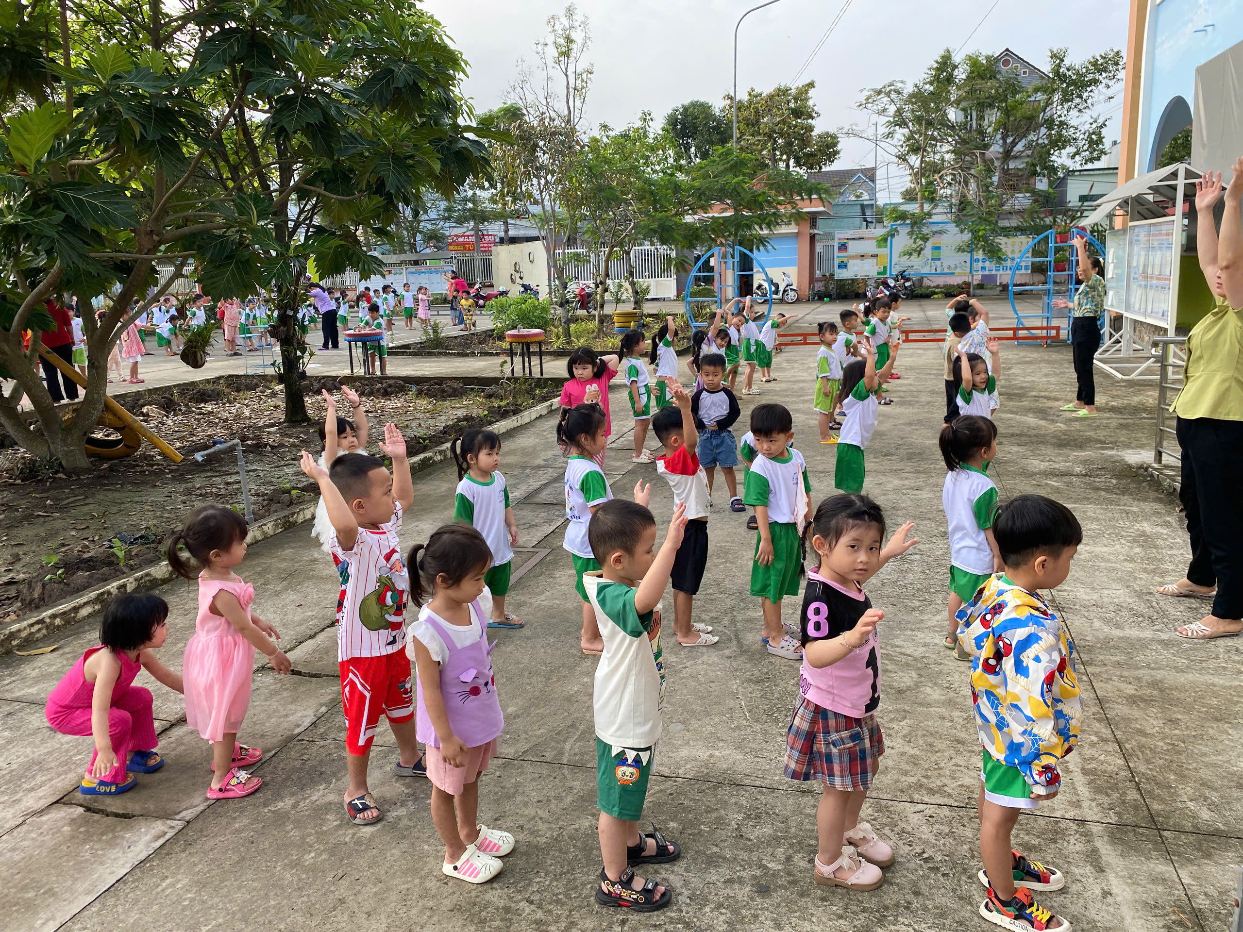 Thể dục sáng của các bé Mầm 1 ngày cuối năm 2025